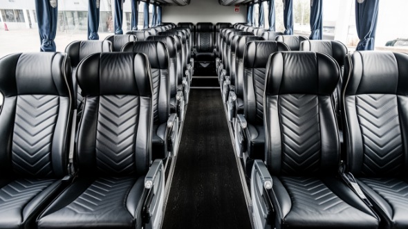 If your group is too big for a minibus but you don’t quite need a full-size charter bus, consider a 50-passenger charter bus rental. It offers all of the same amenities of a full-sized bus, plus a driver and the ability to set your own itinerary.